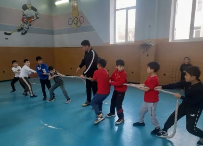 Мектебімізде әр сәрсенбі "Денсаулық күні". Оқушылар үзіліс кезінде бос уақыттарын тиімді пайдаланады. Бастауыш сынып оқушылары "Нысанаға дәлде", "Арқан тарту" сияқты спорттық ойындарын ойнады. Ойын ойнай жүріп балалардың шапшаңдық, жылдамдық қабілеттері арта түседі.
