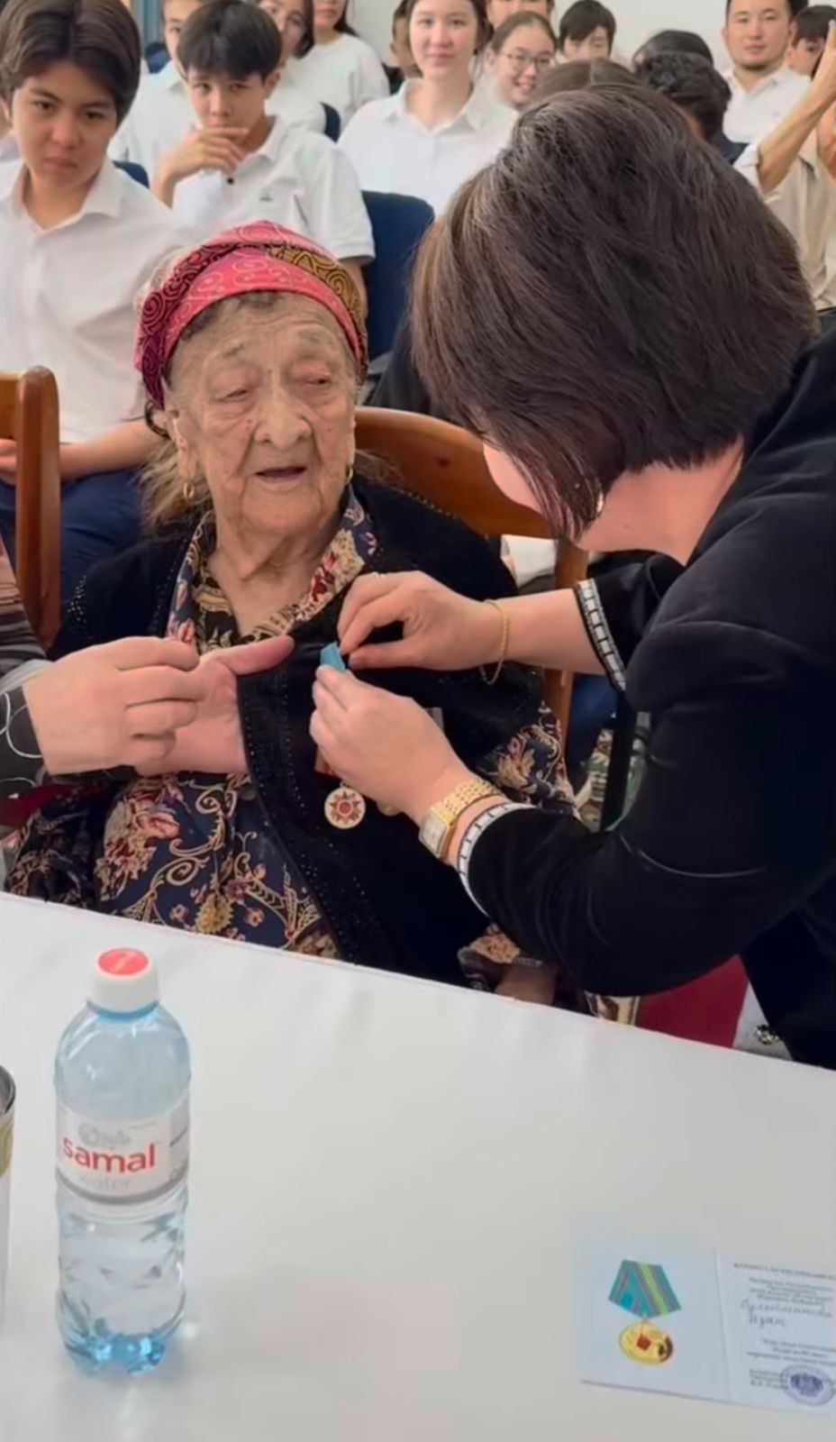 Мерекелік іс-шара барысында Ұлы Отан соғысының тыл ардагері Сулейменова Изят апамызға "Ұлы Отан