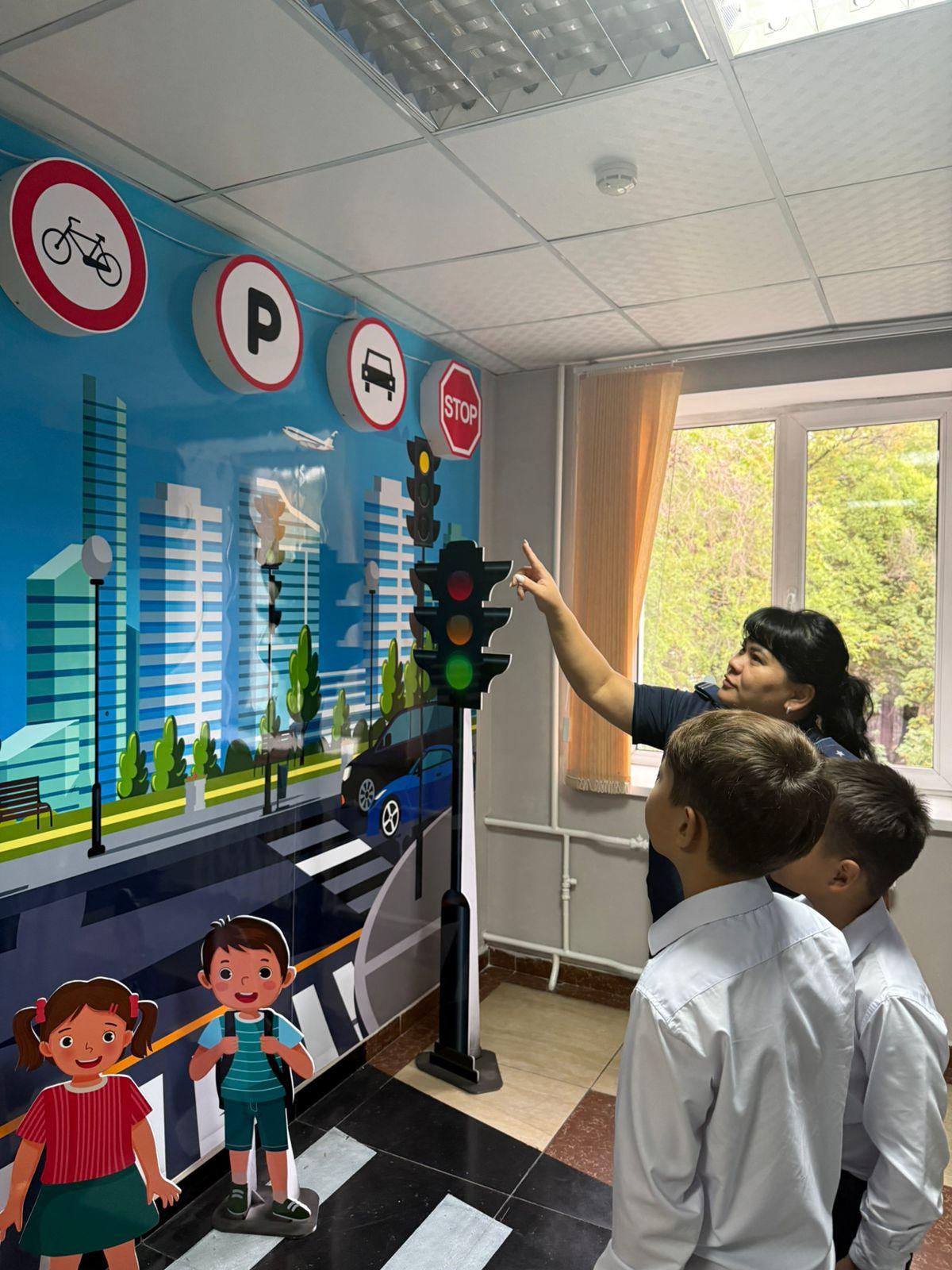 Балаларға жаяу жүргіншілердің міндеттері, бағдаршамның түстері мен жол белгілерінің маңызы түсіндіріліп, қауіпсіздік ережелері айтылды.