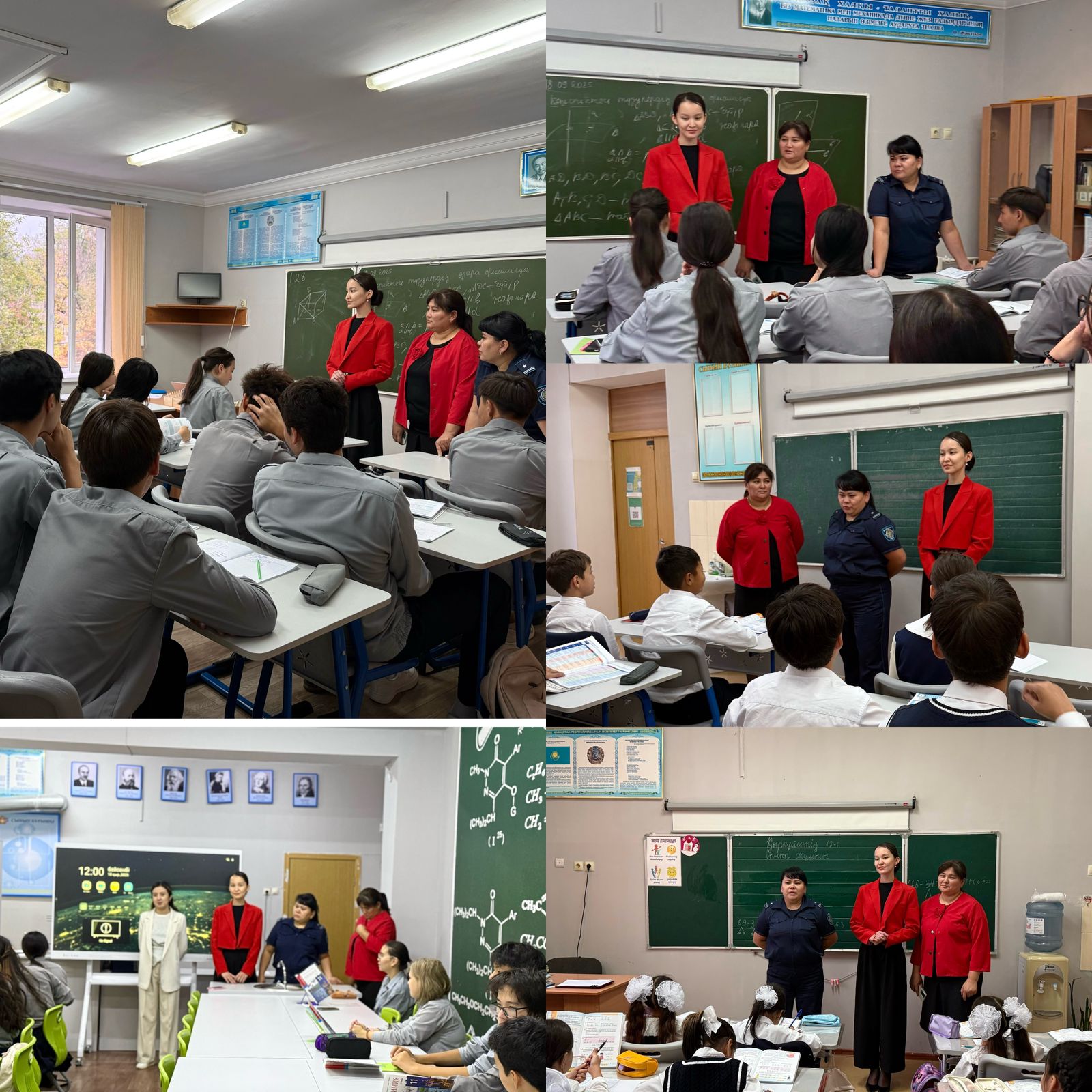 Мектеп инспекторы Т.К. Тохтаевамен бірге 1-11 сынып оқушыларына құқықбұзушылықтың алдын алу мақсатында құқықтық сауаттылық, тәртіп сақтау және қауіпсіздік ережелері туралы ақпарат берілді.