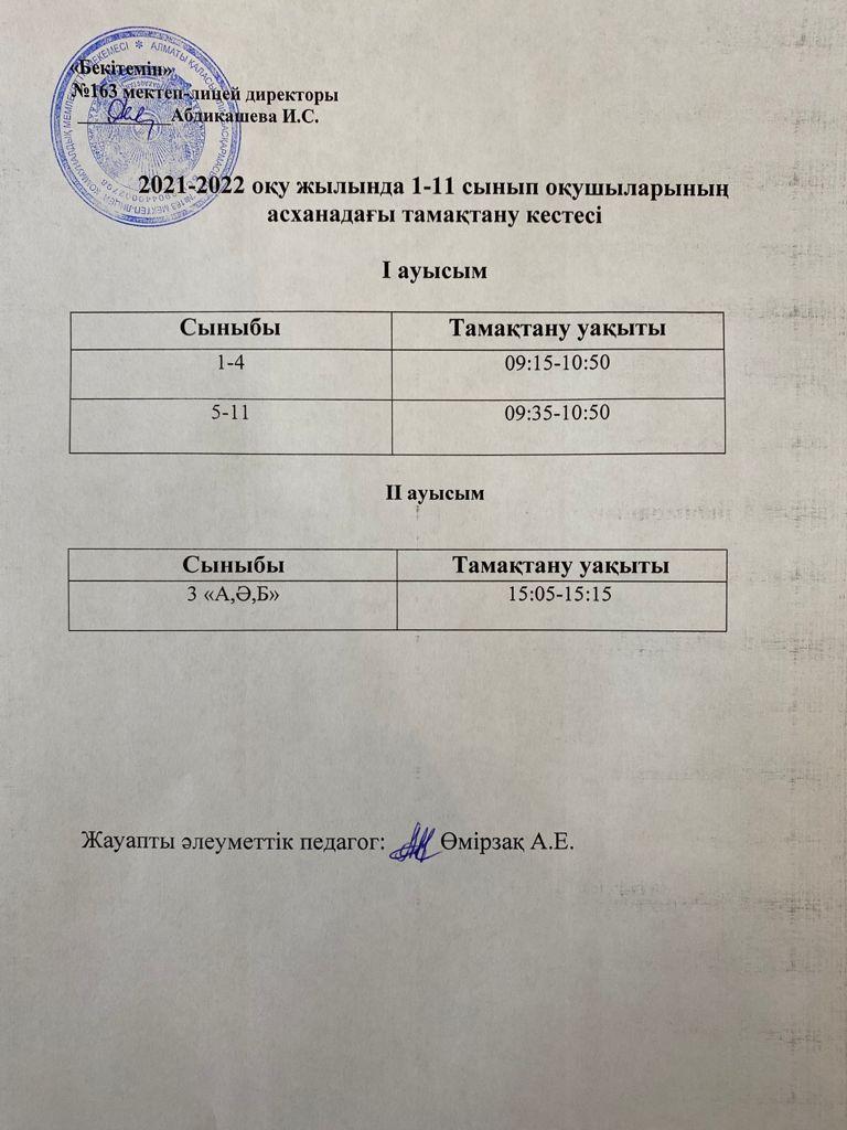 Тамақтану графигі