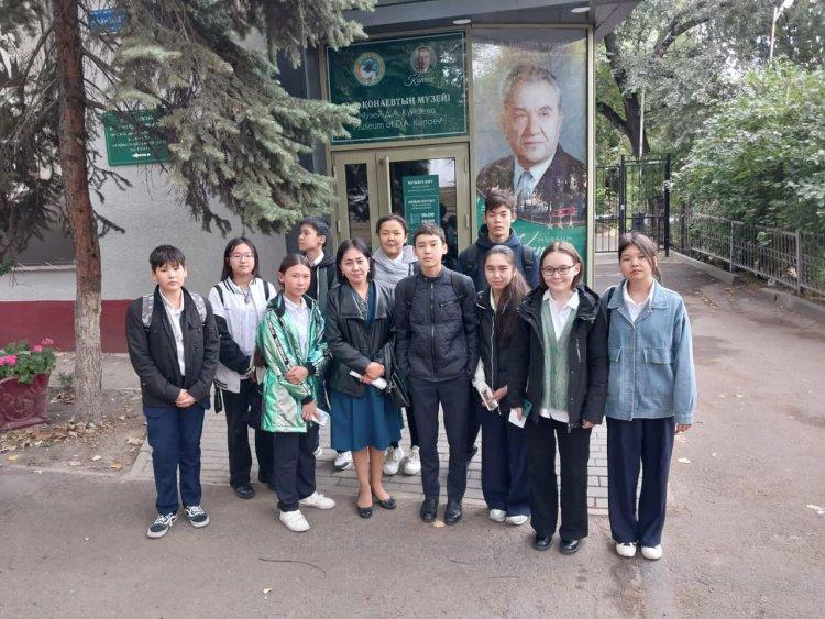 Мектебімізде қазан айы бойы өтетін қоғамдық -гуманитарлық бірлестігінің апталығында сыныптан тыс іс-шара ретінде 7-9-сынып оқушылары қазақ тілі мен әдебиет пәнінің мұғалімі Арыстанбек Күләй мен Бармешева Назирамен бірге Д.А.Қонаевтың мұражай-үйін тамашалады.