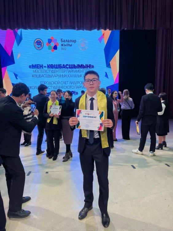 15 ноябрь 2022 0 1 2 3 4 5 Балалар жылы аясында өткен “Мен көшбасшымын” атты қалалық слетке мектебіміздің 10-сынып оқушысы Қайрат Асқар қатысып өз жобасын қорғады Осы беттің QR-коды:QR-код этой страницы: