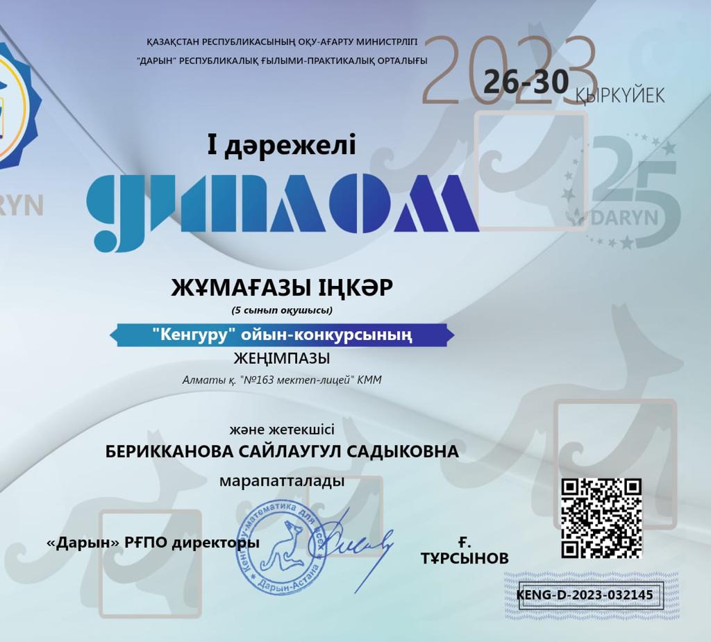 29 сентябрь 2023 0 1 2 3 4 5 Республикалық Кенгуру ойын конкурсының жеңімпаздары! Республикалық Кенгуру ойын конкурсының жеңімпаздары! Осы беттің QR-коды:QR-код этой страницы: