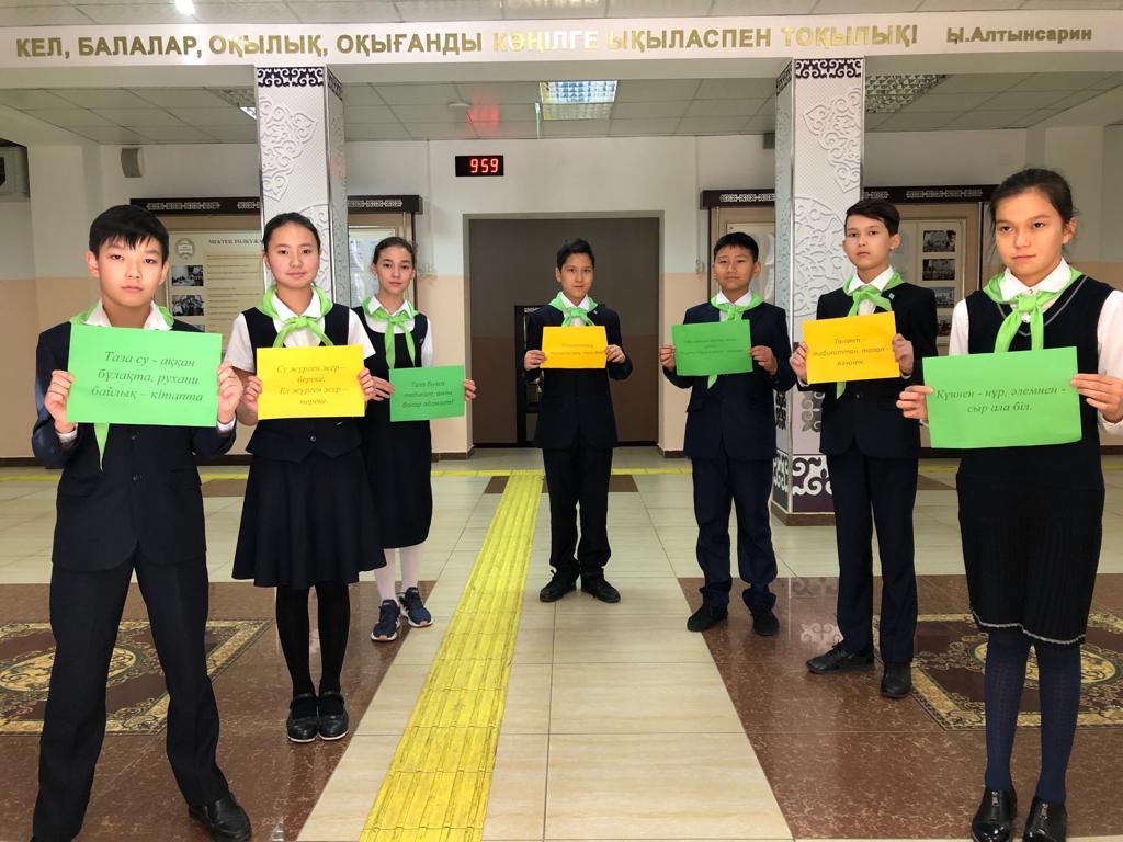 №163 мектеп-лицейінде «Адам және табиғат" атты ауқымды экологиялық акциясы аясында проблемалық-танымдық тәрбие сағаттары, сурет көрмелері, флешмоб, сырттай экскурсиялар ұйымдастырылды. Іс- шаралар барысында белсенді оқушылар мақтау қағаздарымен марапатталды.