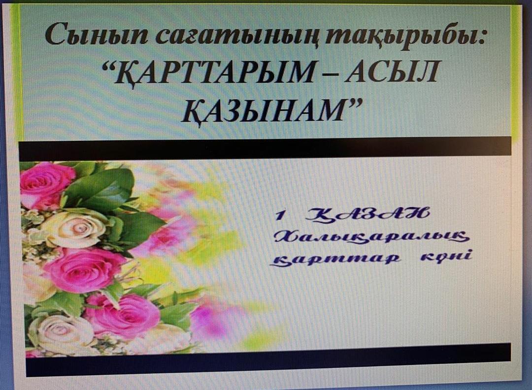 "Қарты бар үйдің қазынасы бар", - дейді дана халқымыз, қариялар - елдің қазынасы. Қария - даналық көзі. Сөзі мірдің оғындай, ақылы терең, жүрегі кең қариялар қашан да ел мен елдің тыныштығын, ел ішіндегі татулықты сақтай білген. Қарты бар елдің берекесі, бірлігі бар. Себебі елдің ниеті, сөзі, ойы бір болу үшін, елді бастай білетін, елі қостай білетін қариялар дәйім керек. Ақылы дария қариялардың көкірегі толы өсиет болмақ. Көргені көп адамдардың ақылын тыңдап, сөзін санаға түйіп жүргеннен ешкім жаман болмас. Өскелең ұрпақты ізгілікке, үлкендерді сыйлауға тәрбиелеу мақсатында №163 мектеп-лицейінде қазан айының басында қарттар мерекесіне орай «Қарттарым асыл қазынам» тақырыбында сынып сағаты, эссе, шығарма, сурет байқаулары онлайн форматта өткізілді.