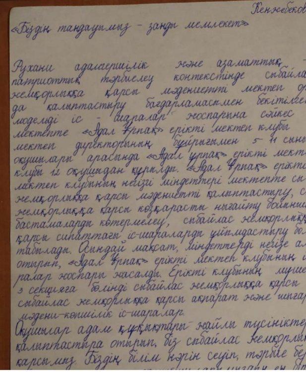09 ноябрь 2020 0 1 2 3 4 5 Эссе байқауы Алматы қаласы, Медеу ауданы №163 мектеп-лицейінде оқушылардың күзгі демалысын тиімді өткізу мақсатында 1-11-сынып оқушылары арасында эссе байқауы ұйымдастырылып, үздік жұмыстар анықталды. Осы беттің QR-коды:QR-код этой страницы: