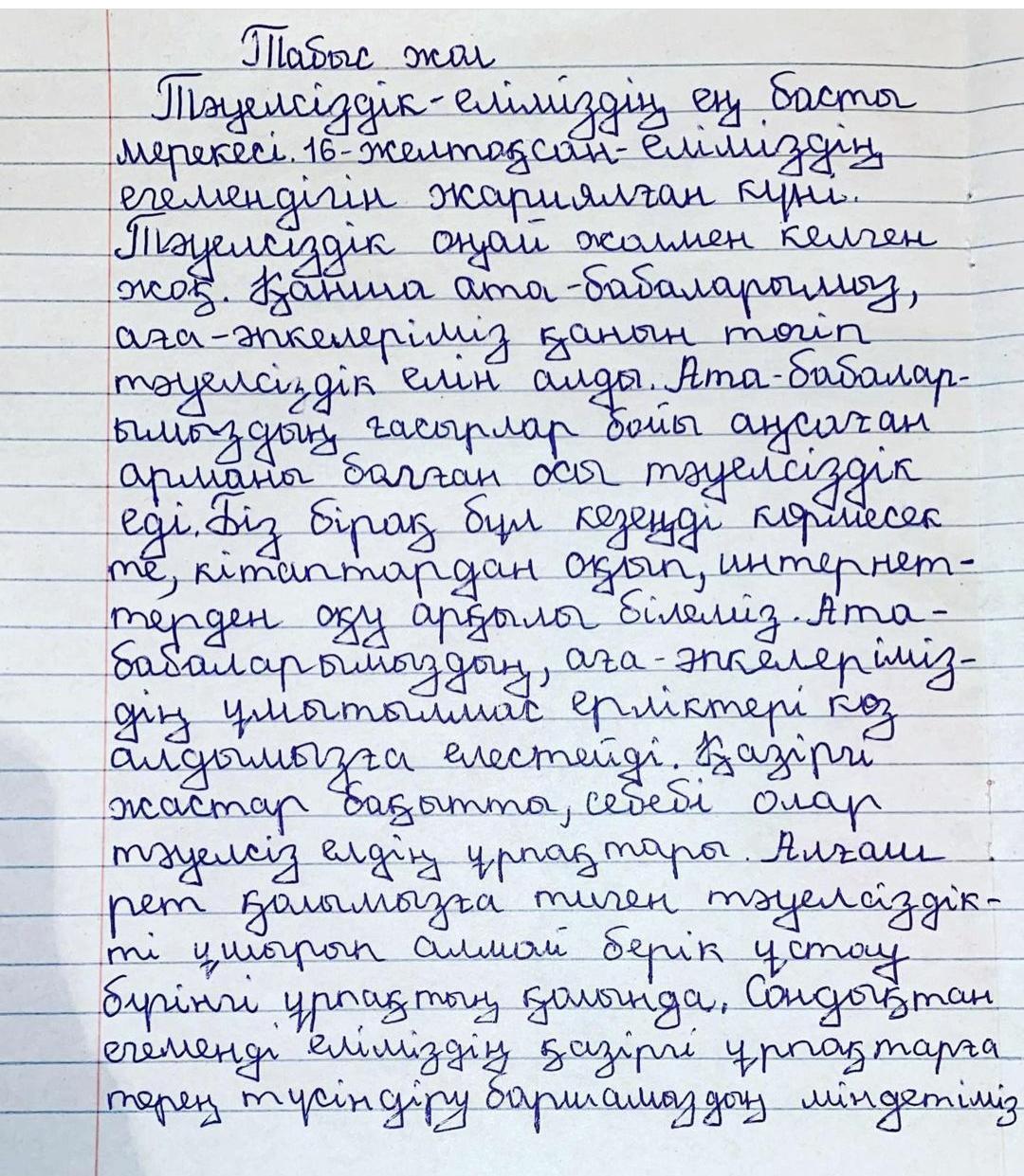 📚Тәуелсіздік мерекесіне арнап «Табыс жолы» тақырыбында 1-11-сынып оқушылары арасында онлайн шығарма байқауы ұйымдастырылды.