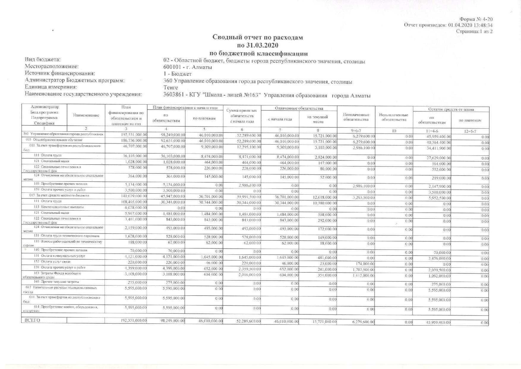 31 март 2020 0 1 2 3 4 5 Сводный отчет по расходам по 31.03.2020 г Осы беттің QR-коды:QR-код этой страницы: