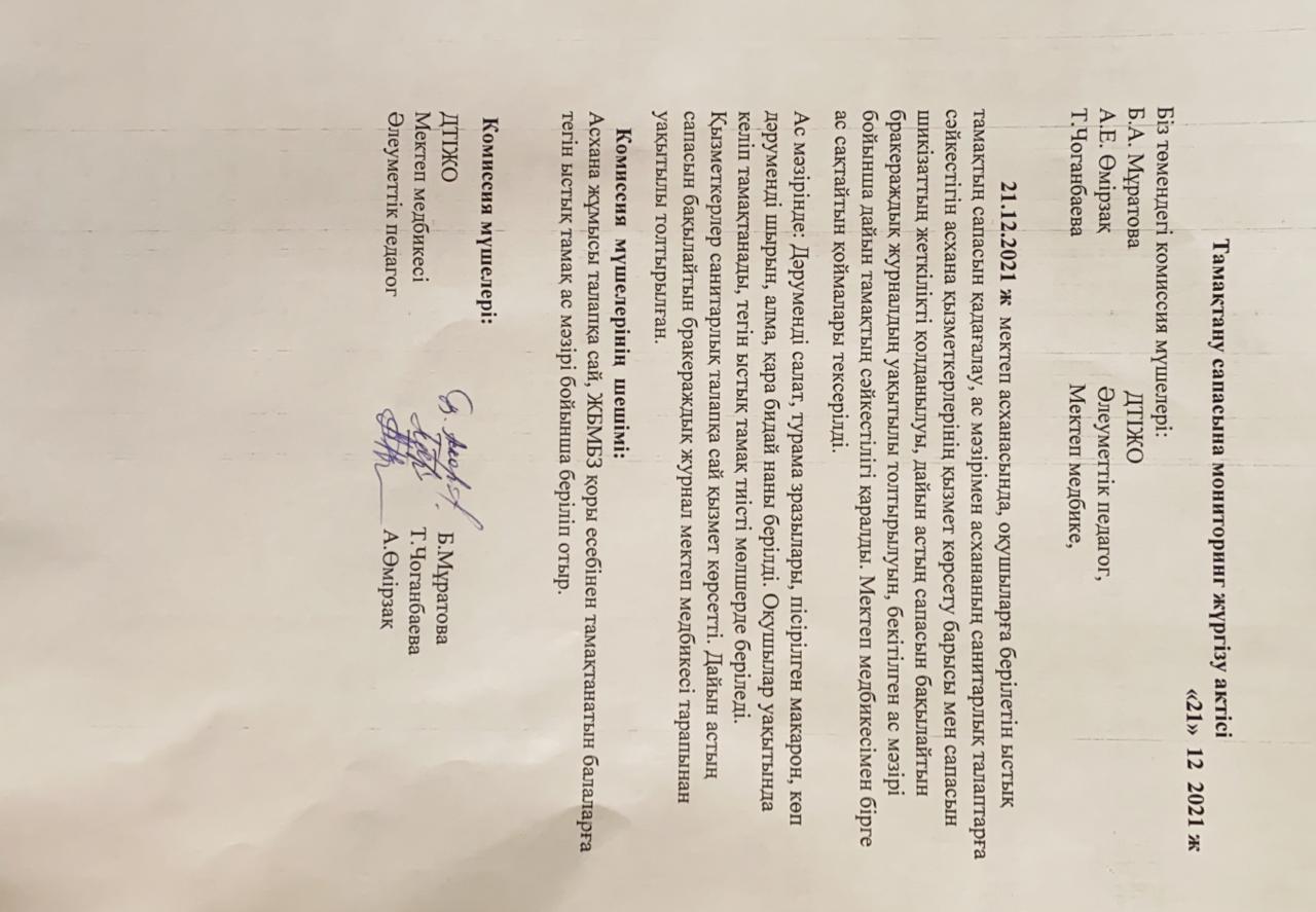21 декабрь 2021 0 1 2 3 4 5 Тамақтану сапасына мониторинг жүргізу актісі Осы беттің QR-коды:QR-код этой страницы: