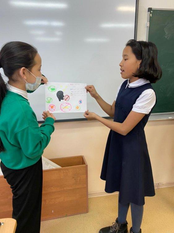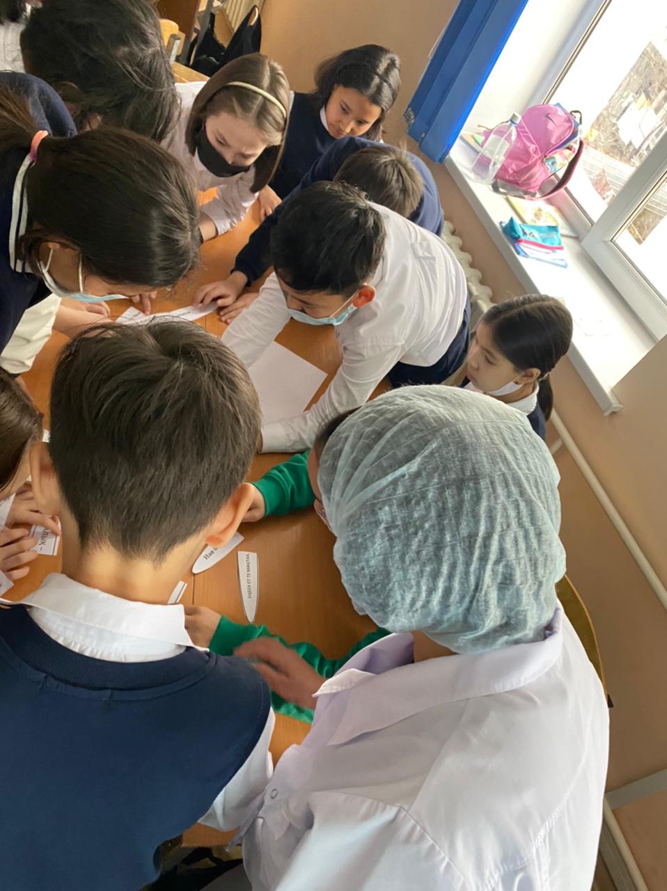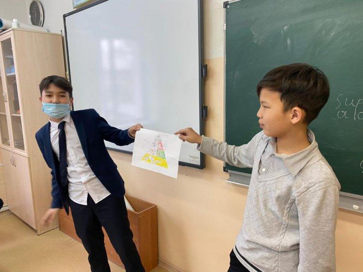2022 жылдың 15 ақпанында №163 мектеп-лицейдің 6 сынып оқушыларымен “Дұрыс тамақтану - денсаулық кепілі” тақырыбында мектеп медбикесімен бірге түсіндір