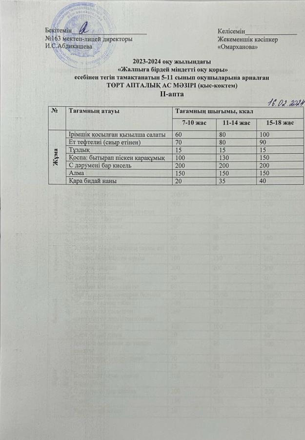 15 март 2024 0 1 2 3 4 5 Күнделікті тегін тамақтанатын оқушылардың ас мәзірі (15.03.2024) Осы беттің QR-коды:QR-код этой страницы: