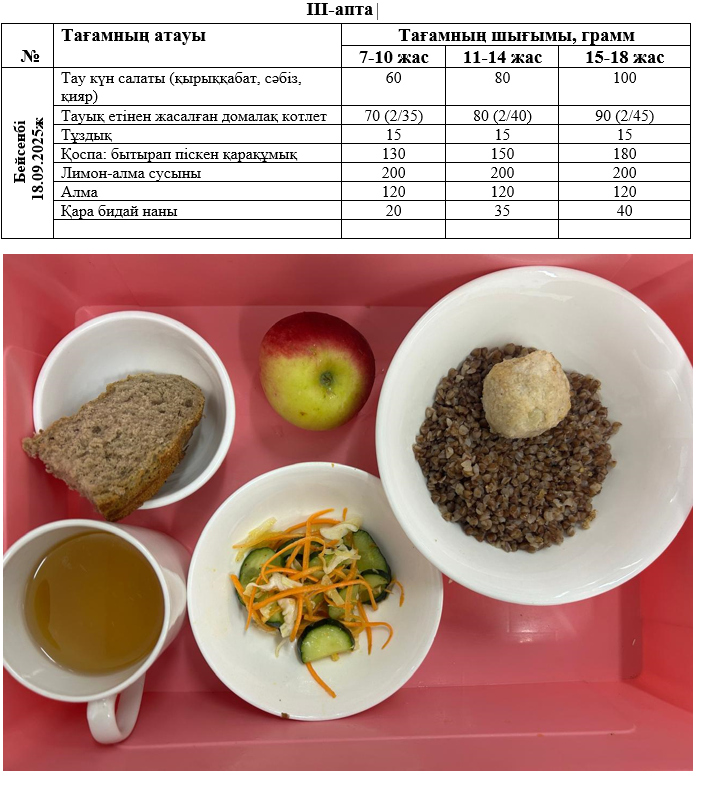 Күнделікті тегін тамақтанатын оқушылардың ас мәзірі (25.12.2024) 4 апта 3 күн