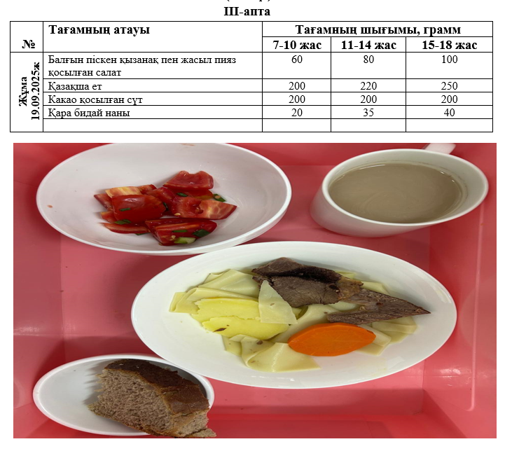 Күнделікті тегін тамақтанатын оқушылардың ас мәзірі (19.12.2024) 3 апта 4 күн