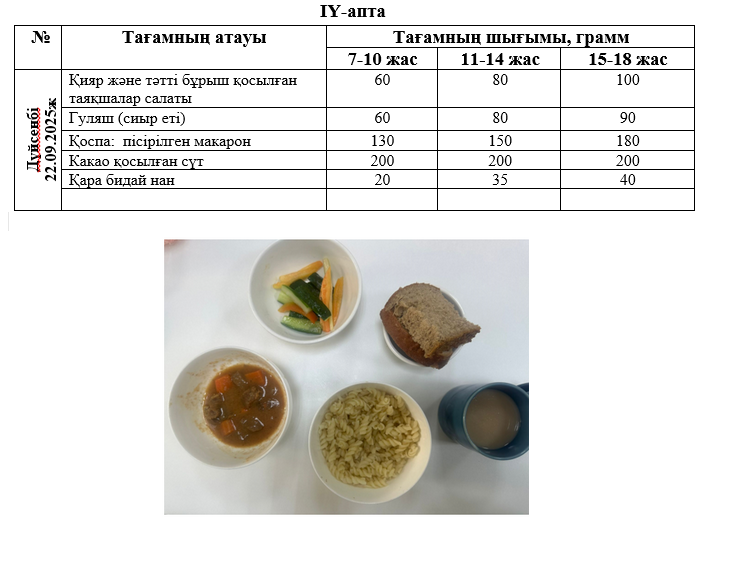 Күнделікті тегін тамақтанатын оқушылардың ас мәзірі (25.12.2024) 4 апта 3 күн