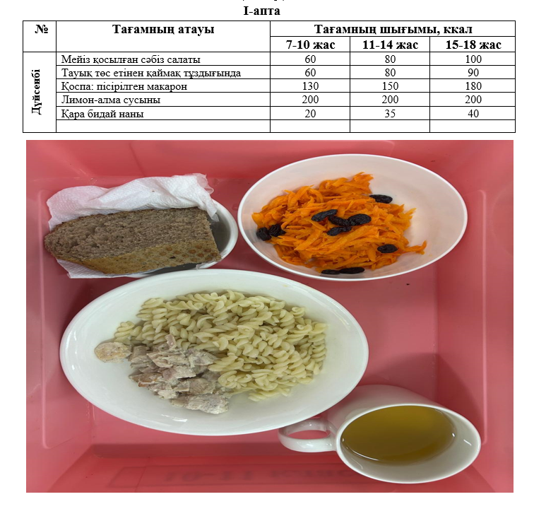 Күнделікті тегін тамақтанатын оқушылардың ас мәзірі (25.12.2024) 4 апта 3 күн