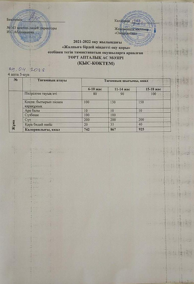 29 апрель 2022 0 1 2 3 4 5 Күнделікті тегін тамақтанатын оқушылардың ас мәзірі (29.04.2022) Осы беттің QR-коды:QR-код этой страницы: