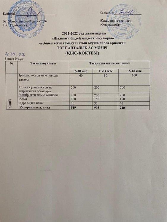 21 май 2022 0 1 2 3 4 5 Күнделікті тегін тамақтанатын оқушылардың ас мәзірі (21.05.2022) Осы беттің QR-коды:QR-код этой страницы: