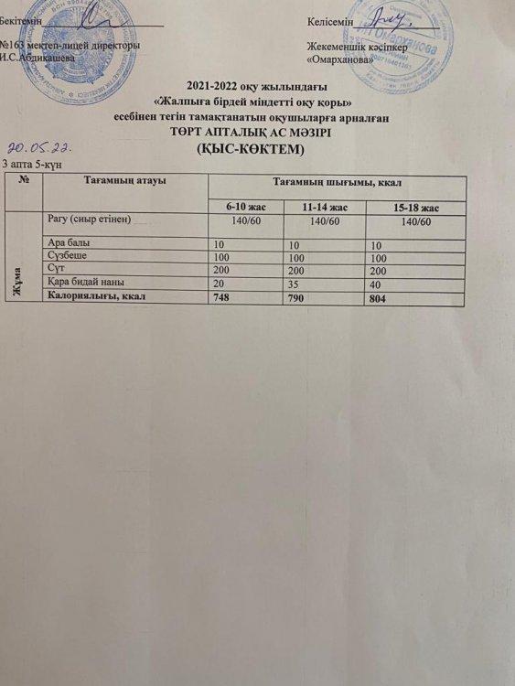 20 май 2022 0 1 2 3 4 5 Күнделікті тегін тамақтанатын оқушылардың ас мәзірі (20.05.2022) Осы беттің QR-коды:QR-код этой страницы: