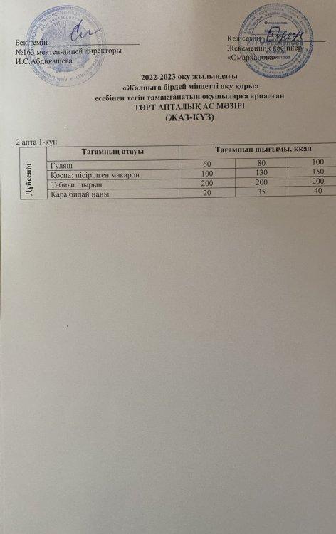 03 октябрь 2022 0 1 2 3 4 5 Күнделікті тегін тамақтанатын оқушылардың ас мәзірі (03.10.2022) ) Осы беттің QR-коды:QR-код этой страницы: