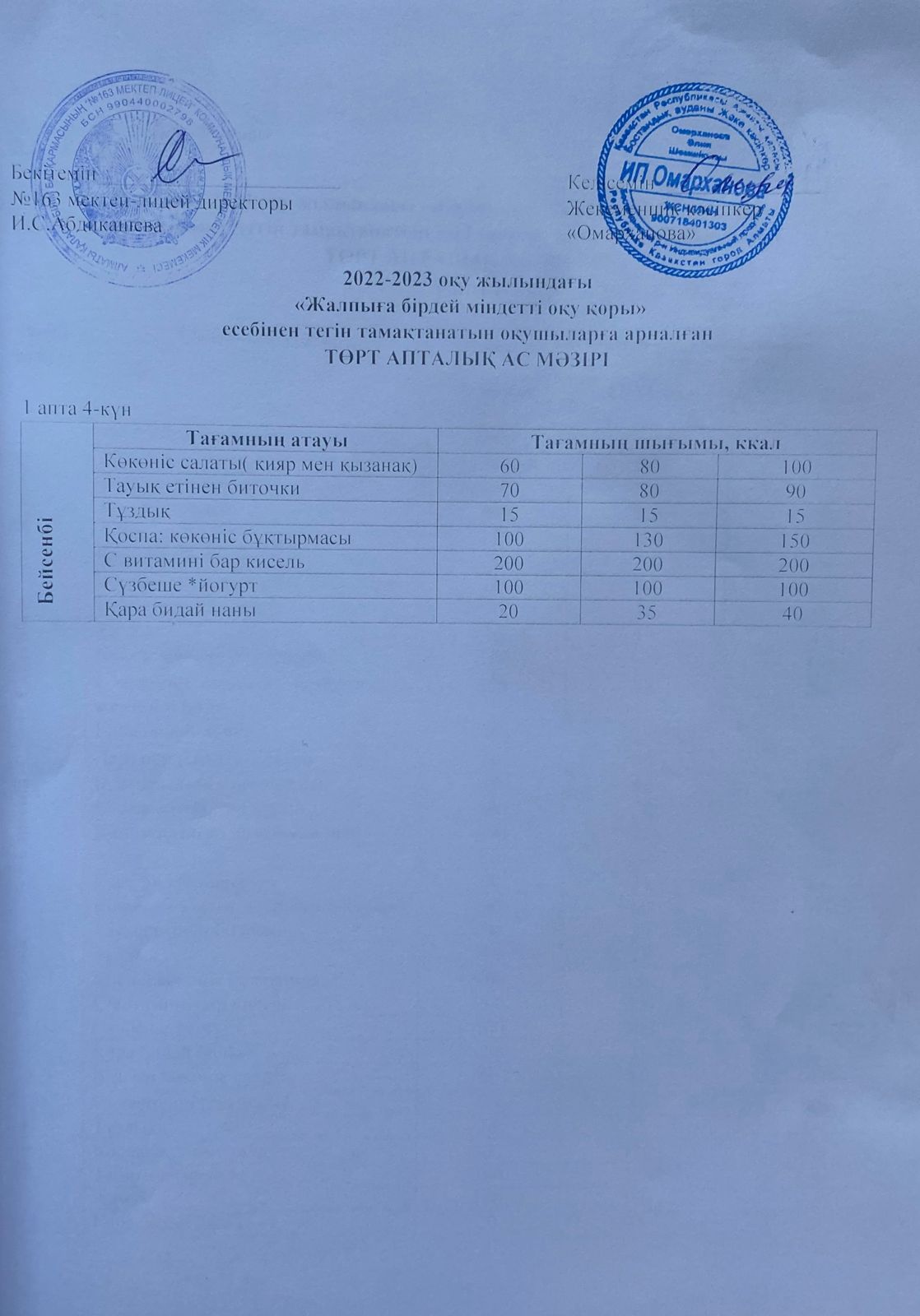 04 май 2023 0 1 2 3 4 5 Күнделікті тегін тамақтанатын оқушылардың ас мәзірі (04.05.2023) Осы беттің QR-коды:QR-код этой страницы: