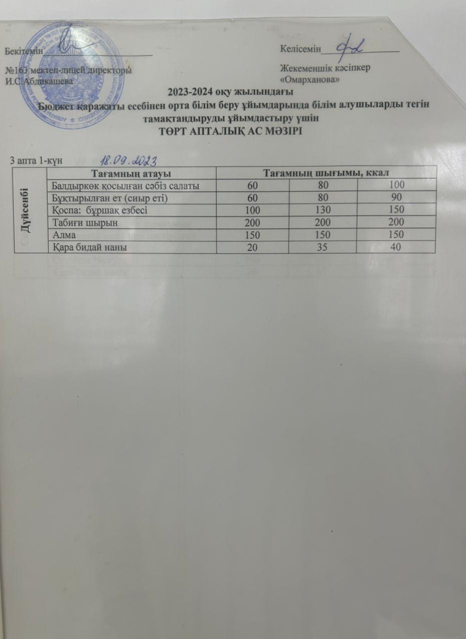 18 сентябрь 2023 0 1 2 3 4 5 Күнделікті тегін тамақтанатын оқушылардың ас мәзірі (18.09.2023) Осы беттің QR-коды:QR-код этой страницы: