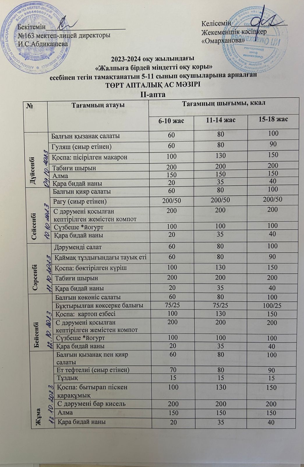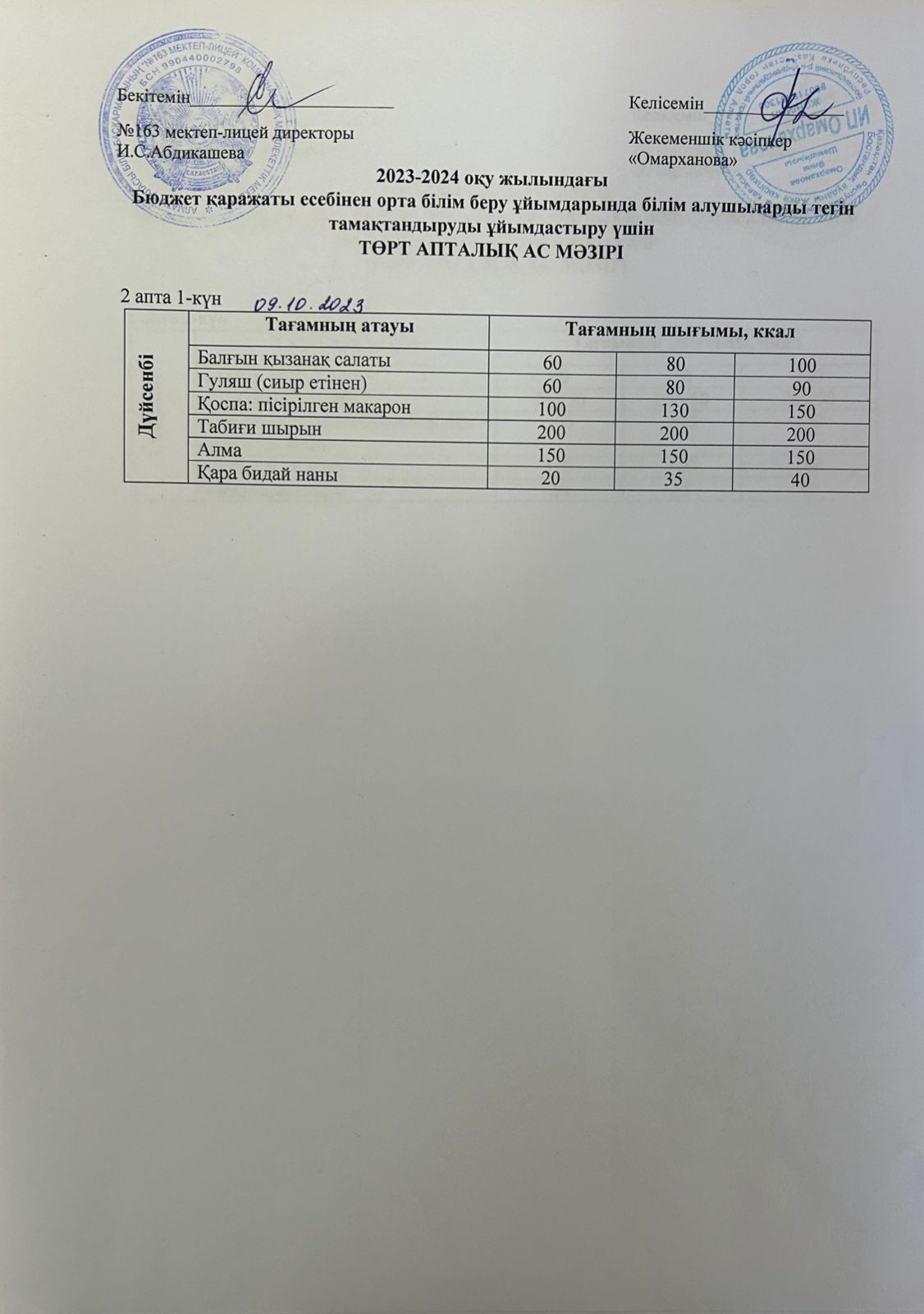 09 октябрь 2023 0 1 2 3 4 5 Күнделікті тегін тамақтанатын оқушылардың ас мәзірі (09.10.2023) Осы беттің QR-коды:QR-код этой страницы: